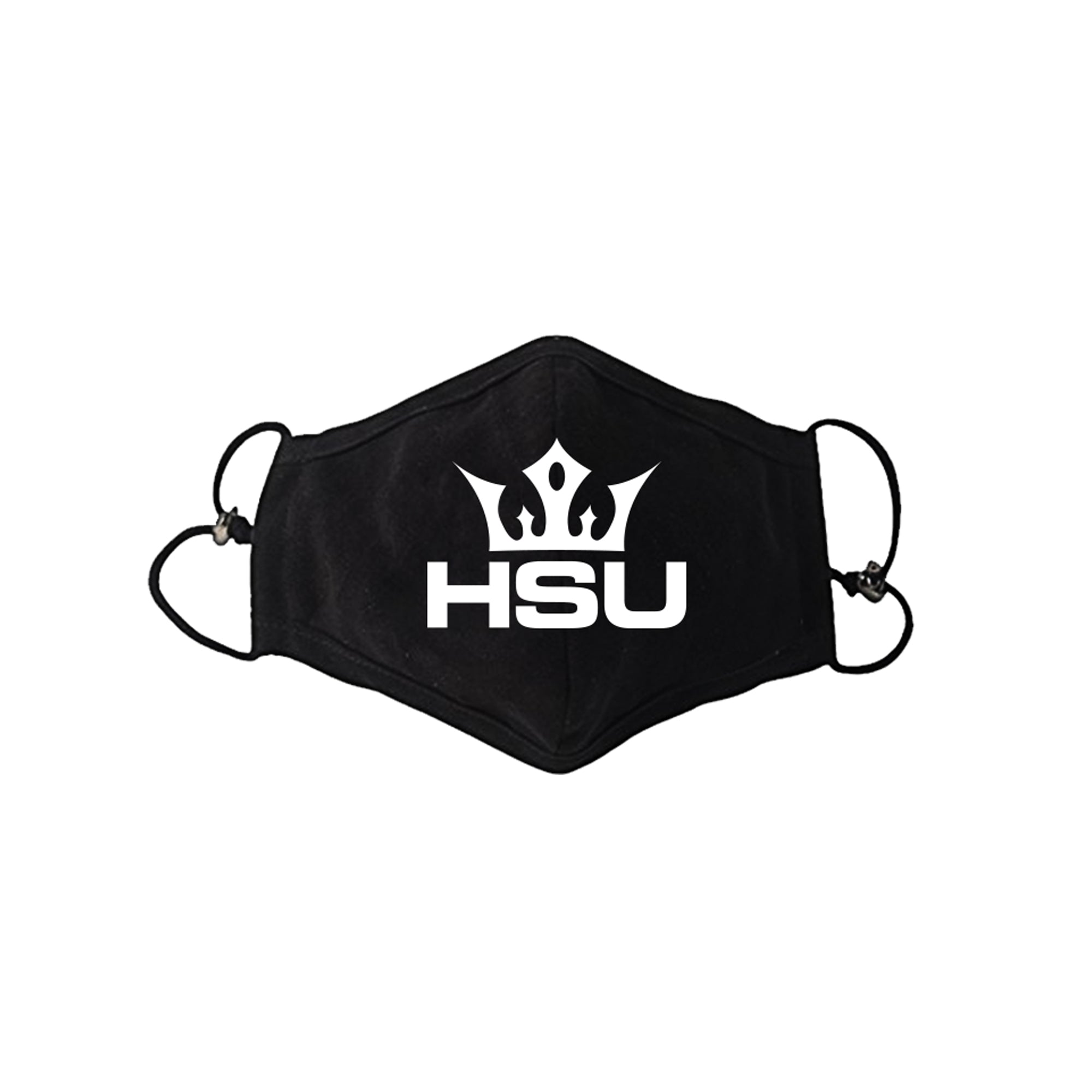 This adjustable face mask features the iconic HSU crown, in white, on a sleek black background. A must have collector’s item.