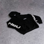 STATEMENT SLEEVES, CLEAN FINISH. This heavyweight black hoodie features bold HSU logos running down both arms with a minimal chest print. Built for comfort, structure, and standout style that takes streetwear up a notch.
