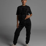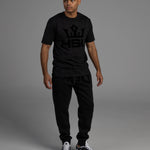 Our black track pants are the perfect staple addition to any wardrobe. Made from high-quality 360 GSM polyester fleece, these pants are not only ultra-soft and cozy, but also built to last. With a sleek black design and a felt transfer-printed logo on the crotch, these pants are the ultimate expression of understated style.