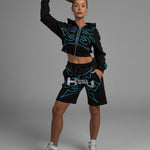 Crafted with the utmost attention to detail, these shorts are the perfect complement our neon blue hoodies in men's and women's, creating a cohesive look that is both fashionable and functional. The premium polyester fleece material is incredibly soft and comfortable, making these shorts perfect for festivals, lounging, working out, or running errands.