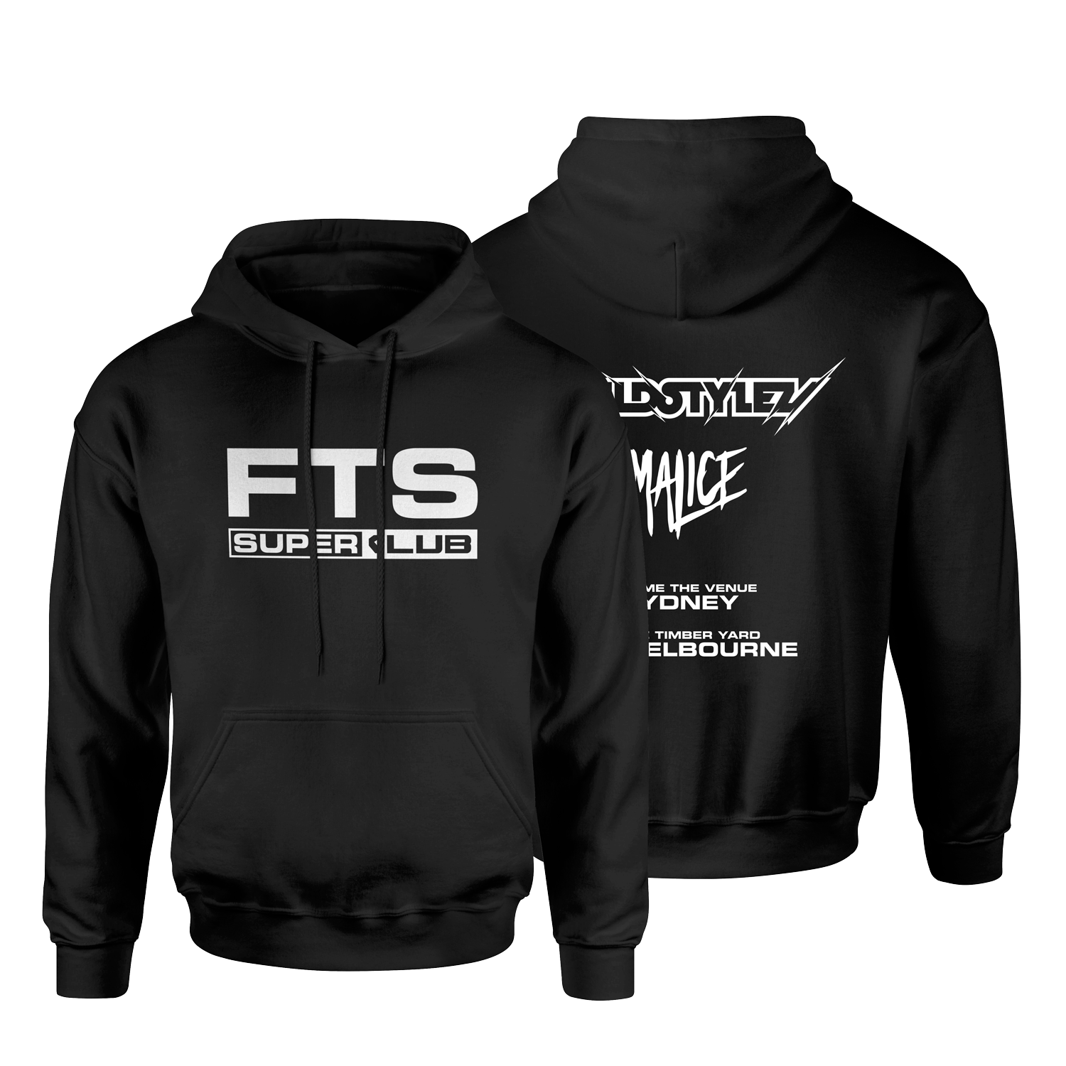 Limited edition event merchandise from FTS Sydney and Melbourne. Featuring the FTS SuperKlub design and artists, Wildstylez and Malice, this premium hoodie is a collector's piece from the FTS Sydney and Melbourne event.