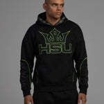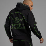 Get ready to turn heads with our black and neon green hoodie - the ultimate must-have for any hardstyle enthusiast. Made from top-quality 360 GSM polyester fleece, this hoodie not only feels luxuriously soft and cozy but also provides unbeatable durability. The vibrant neon green piping, tackle twill embroidered brand logo, and screen printed logos on the arm all combine to make a bold statement.