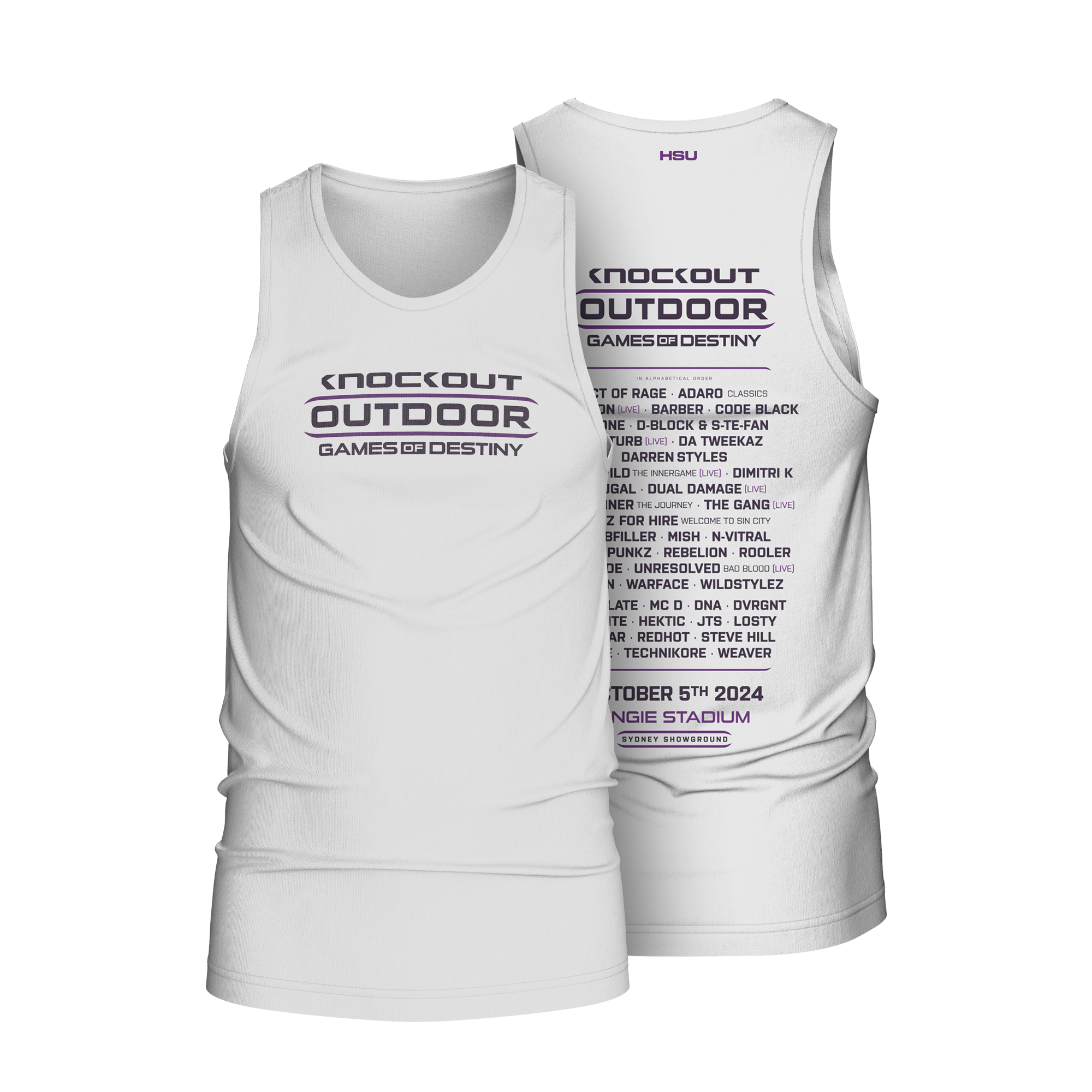 Clean, crisp, and cut for action. The KO 2024 white muscle singlet keeps things simple but sharp, lightweight, breathable, and made to flex with every move.