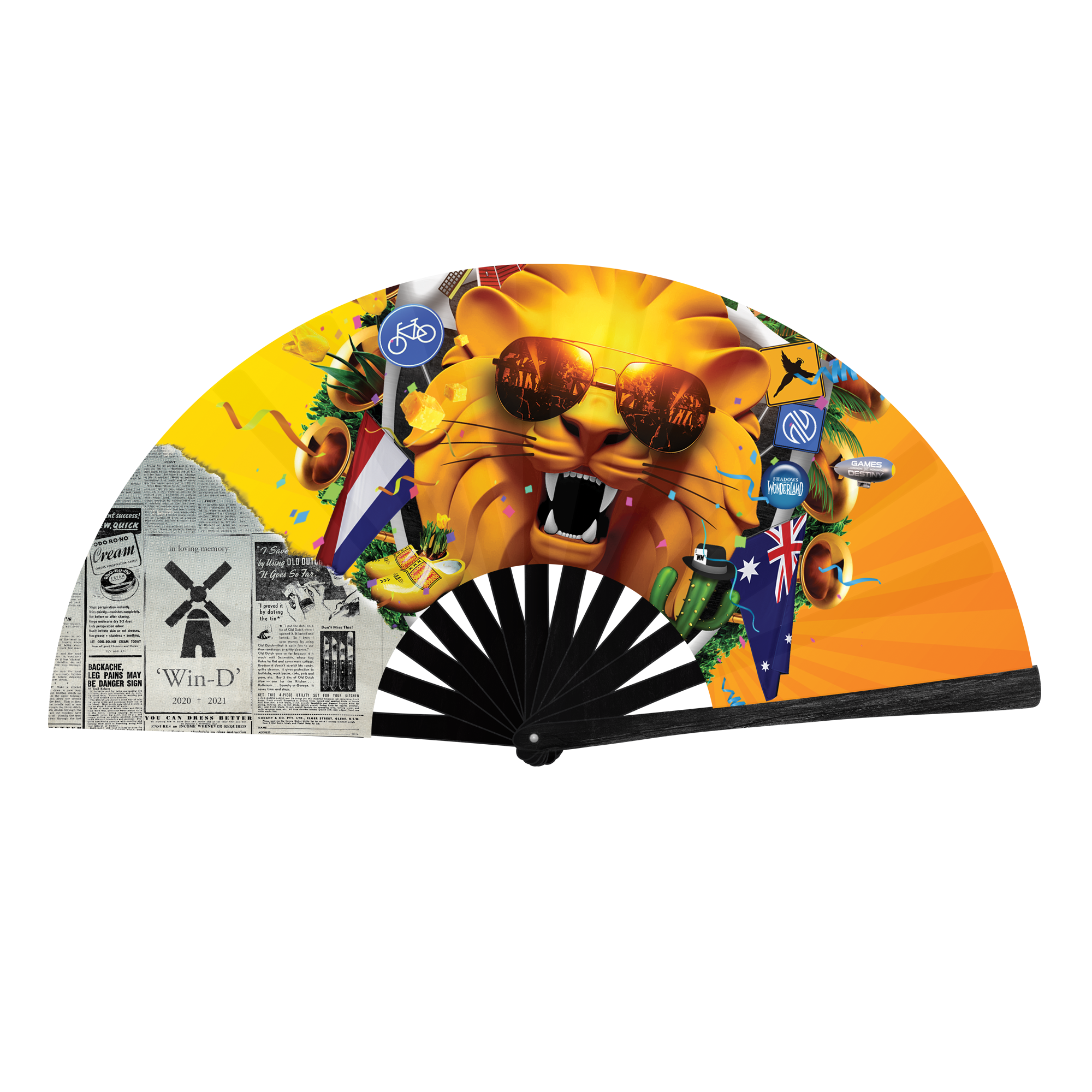 This limited edition fan features a fierce lion stream design, with pops of colour. A must have collector's accessory!