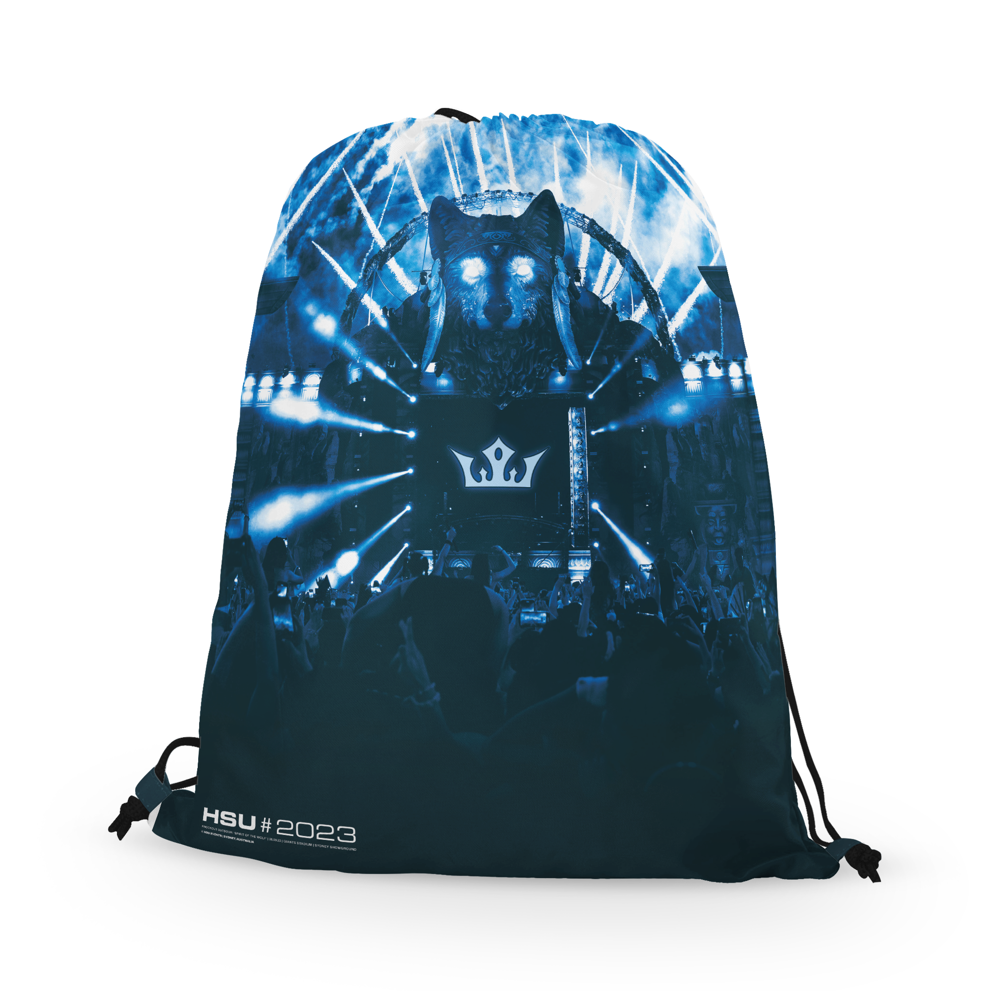Limited edition event merchandise from Knockout Outdoor. Featuring the Spirit of the Wolf design, in blue, this exclusive drawstring bag is a collector's piece from the 2023 Knockout Outdoor: Spirit of the Wolf event.