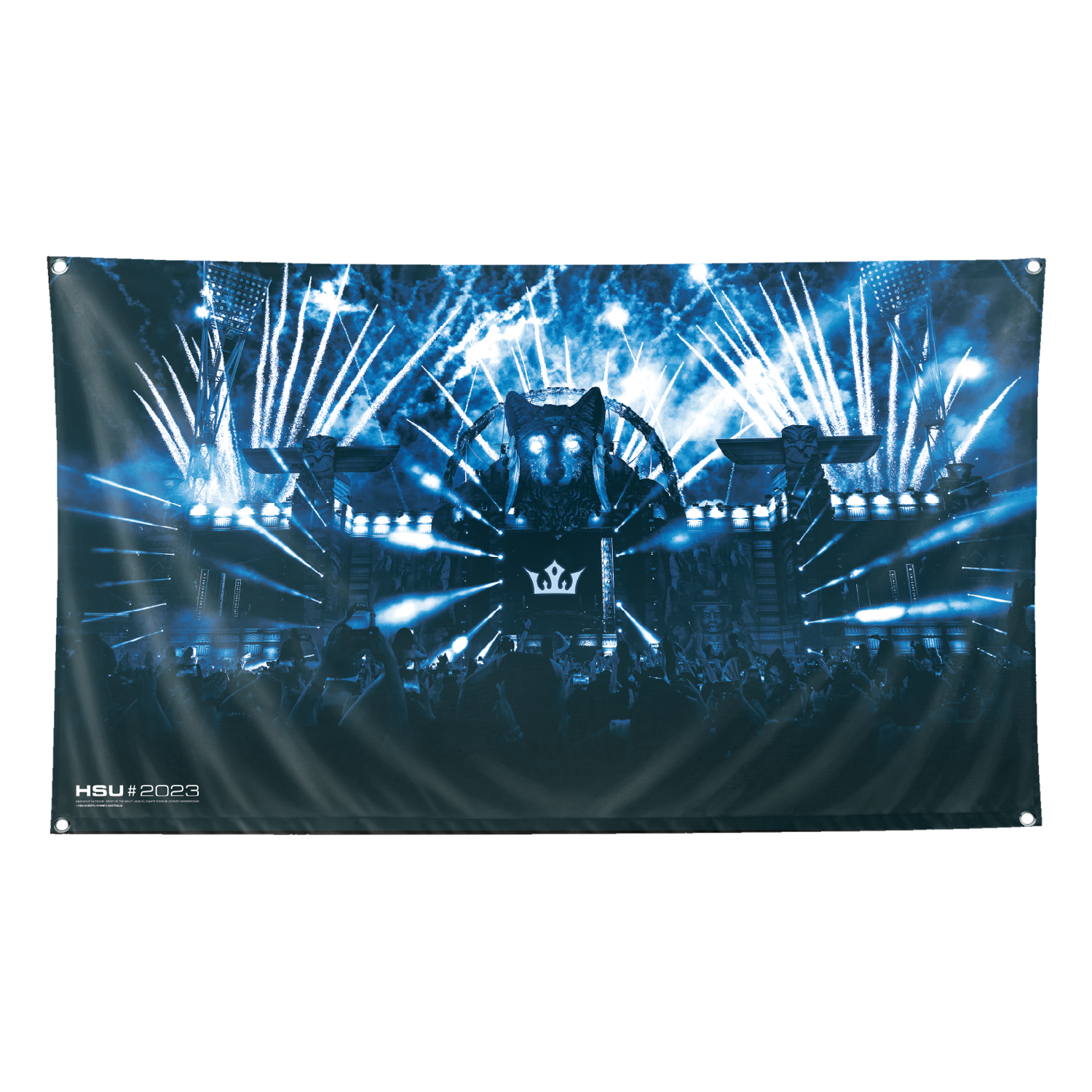 Limited edition event merchandise from Knockout Outdoor. Featuring the Spirit of the Wolf design, in blue, this exclusive flag is a collector's piece from the 2023 Knockout Outdoor: Spirit of the Wolf event.