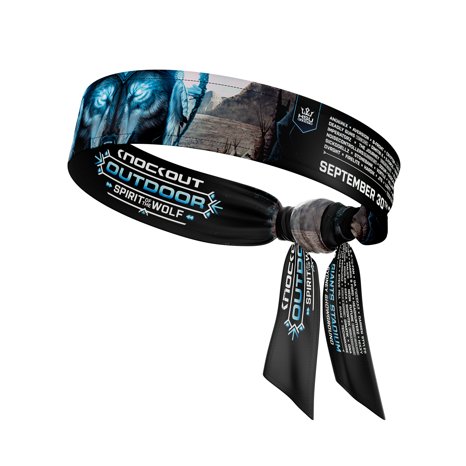 Limited edition event merchandise from Knockout Outdoor. Featuring the Spirit of the Wolf design, this signature headband is a collector's piece from the 2023 Knockout Outdoor: Spirit of the Wolf event.