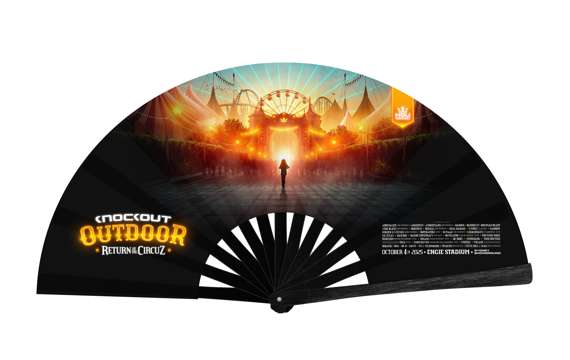 Keep cool and make a statement with the official KO2025 Lineup Fan. Built for the crowd, the pit, and the rail — this is the essential accessory for every heated moment.