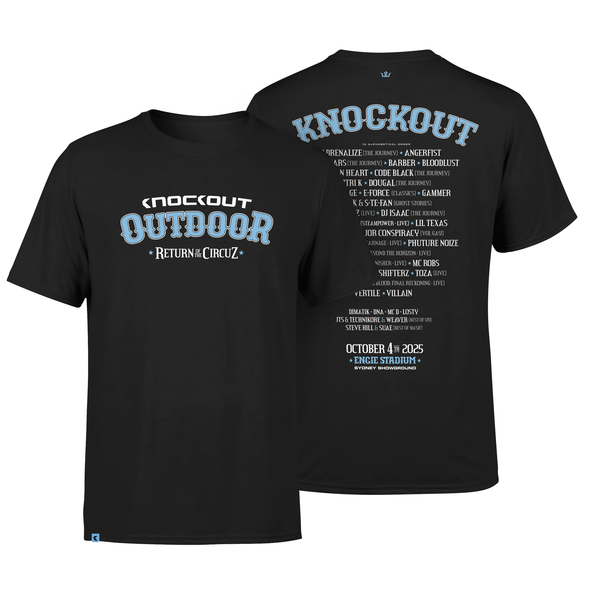Keep it classic with the official KO2025 T-Shirt. Soft, breathable, and built for everyday wear, this piece lets you rep the event on and off the dancefloor.